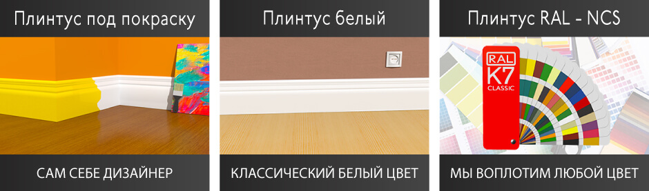При заказе плинтуса с финишной покраской в белом цвете или в любом цвете по таблице RAL/NCS/CS мы дополнительно наносим четвертый слой краски по Вашему выбору. После полного высыхания изделия упаковываться по 8-10 штук в стрейч пленку.