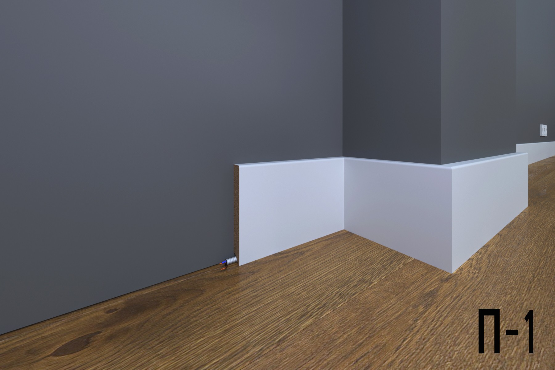 Напольный плинтус из МДФ имеет небольшой закругленный радиус R-3, представляет собой идеально ровную поверхность. Первоначальный вид выдержан в лаконичных нотах и окрашен в белый цвет. При желании заказчика, плинтус окрашивается в необходимый оттенок из предложенной палитры красок. Конструкция – цельная.