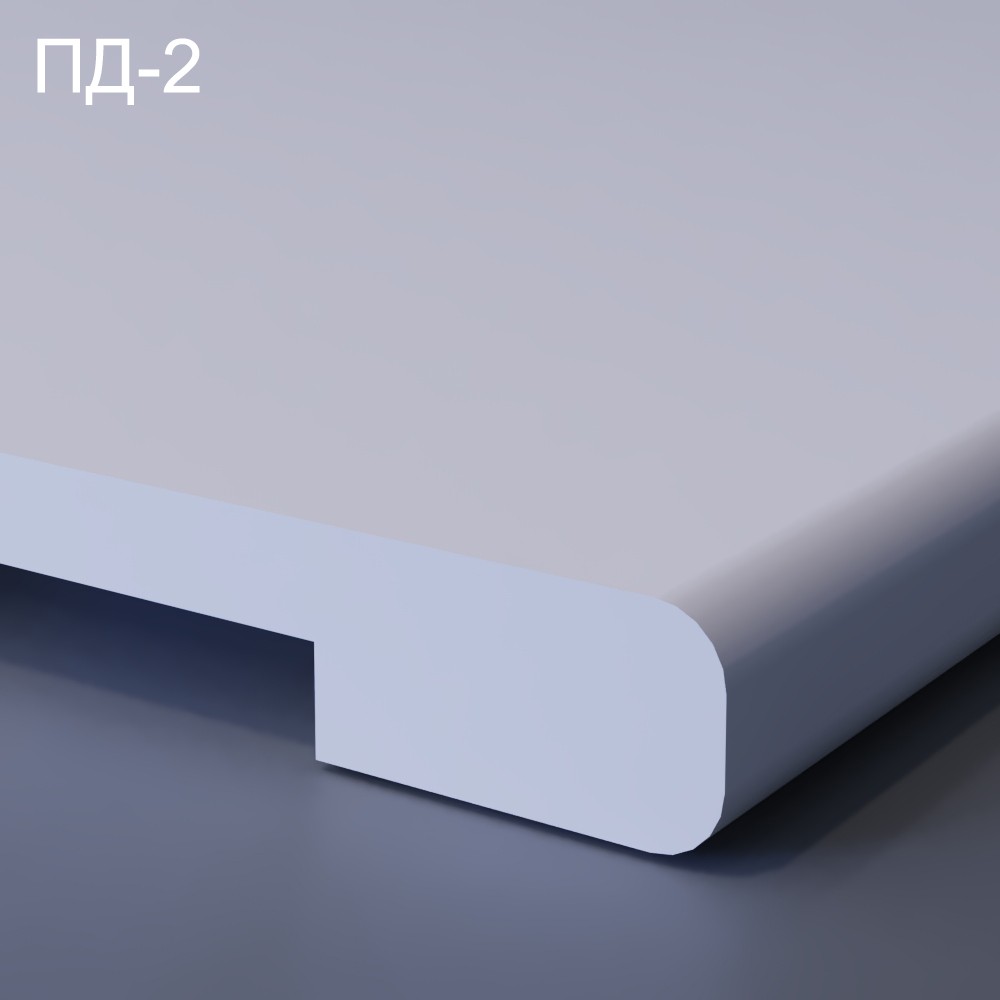 Подоконник ПД-2 выдержан в классическом стиле. Первоначально подоконник выполнен в белом цвете, по желанию заказчика оттенок может быть изменен на любой другой предоставленный оттенок. Ширина достигает 32-40 мм, что само по себе выступает гарантом качества и добротности изделия. Радиус скруглений вверху и внизу одинаковый – R-10.